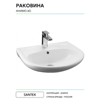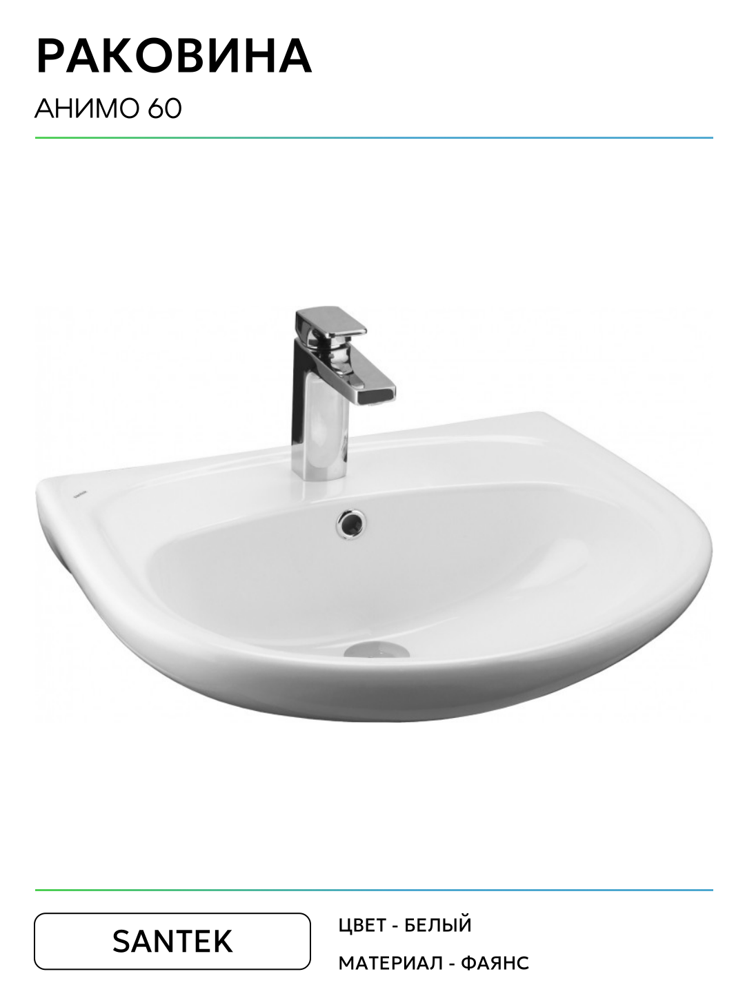 Раковина Santek Анимо 60 1WH110508 - это стильное и функциональное решение для вашей ванной комнаты.