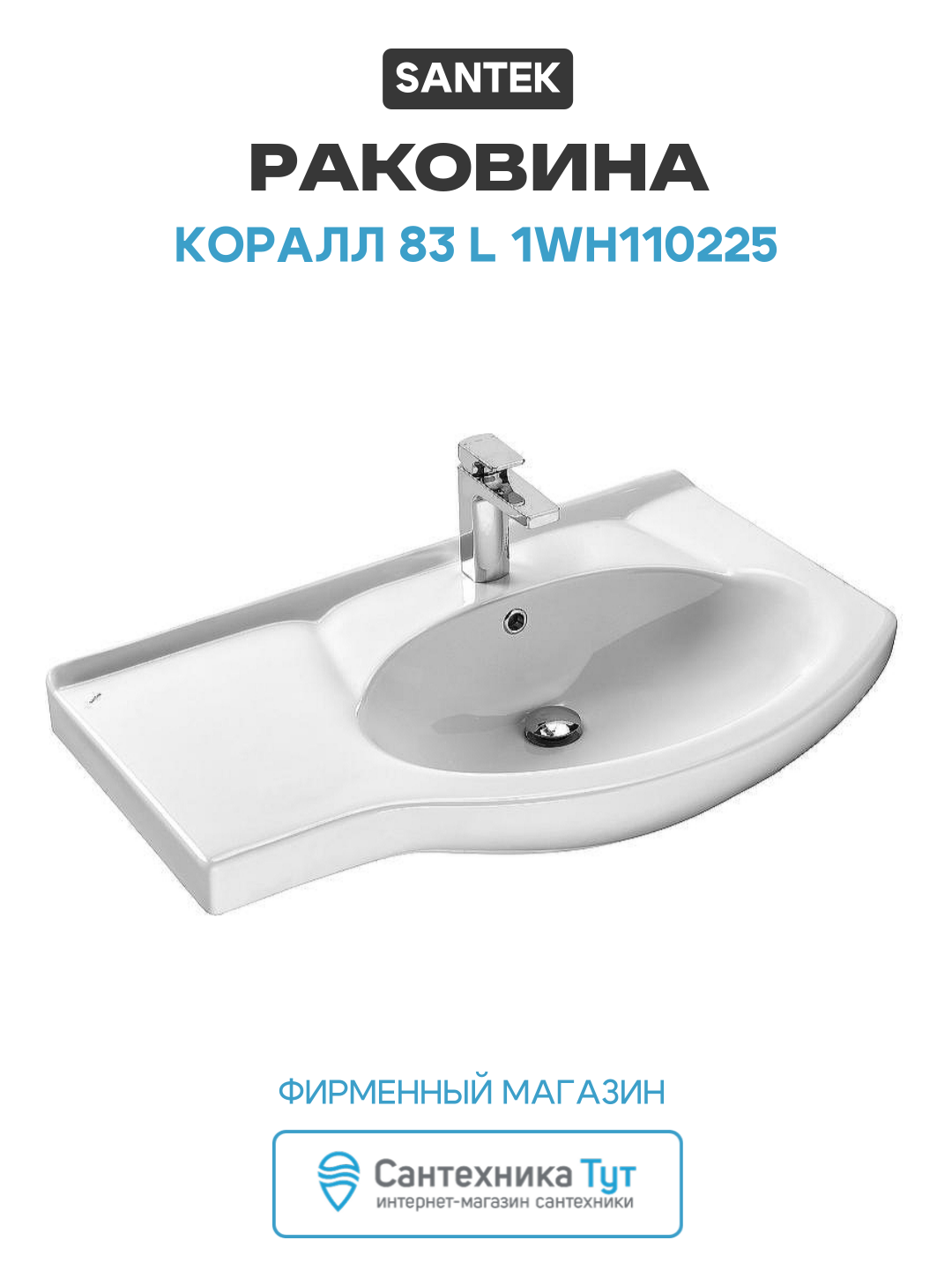 Раковина Santek Коралл 83 L 1WH110225 Белая: сравнение цен, характеристики, фото, актуальное наличие и цены.