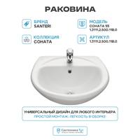 Купить Раковина Santeri 1.3111.2. S00.11B, без пьедестала, круглая, белая, 54×22,5 см с доставкой по всей России.