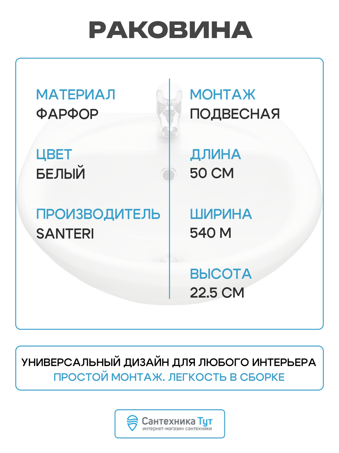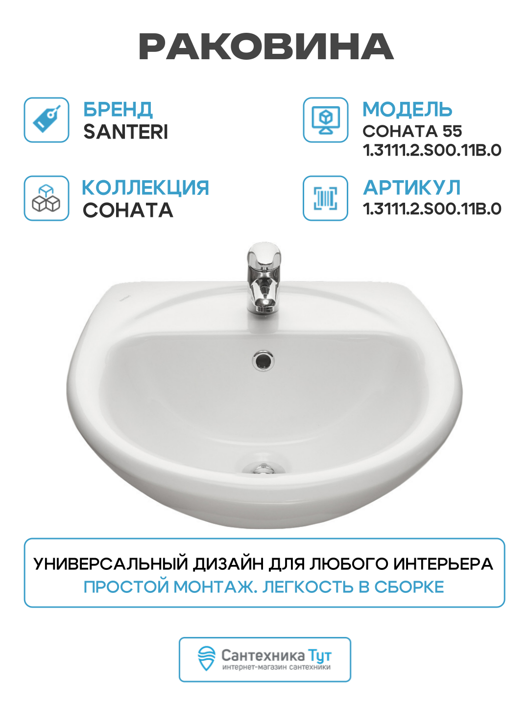 Раковина Santeri 1.3111.2. S00.11B, без пьедестала, круглая, белая, 54×22,5 см: сравнение цен, характеристики, фото, актуальное наличие и цены.