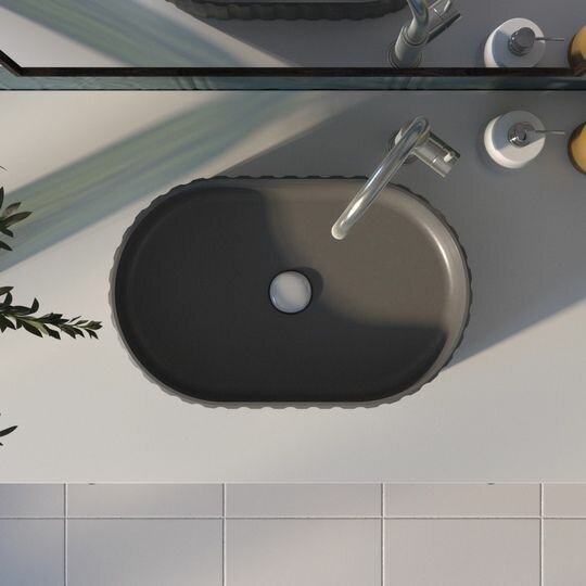 Раковина ребристая накладная для ванной комнаты. "Интерьерный" бетон, технология "холодная керамика". Современная формула с армированием. Очень прочная. Все материалы, применяемые при изготовлении, имеют сертификат соответствия и применяются для организации пищевых производств. Многоступенчатая защита от пятен, эко лаком-пропиткой. Качественная форма, соблюдение технических процессов, материалы и работа мастера позволяют сделать "фабричное качество", но при всем при этом каждая раковина индивидуальна с равномерным цветом по поверхности. Срок эксплуатации десятки лет. Ремонтопригодна.