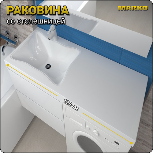 Раковина со столешницей для ванной комнаты над стиральной машиной белая «Клевер 120»: сравнение цен, характеристики, фото, актуальное наличие и цены.