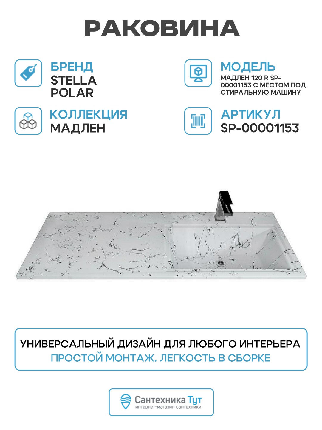 Купить Раковина Stella Polar Мадлен 120 R SP-00001153 с местом под стиральную машину искусственный камень подвесная 120.3 с доставкой по всей России. Раковина Stella Polar Мадлен 120 R SP-00001153 с местом под стиральную машину искусственный камень подвесная 120.3: сравнение цен, характеристики, фото, актуальное наличие и цены.