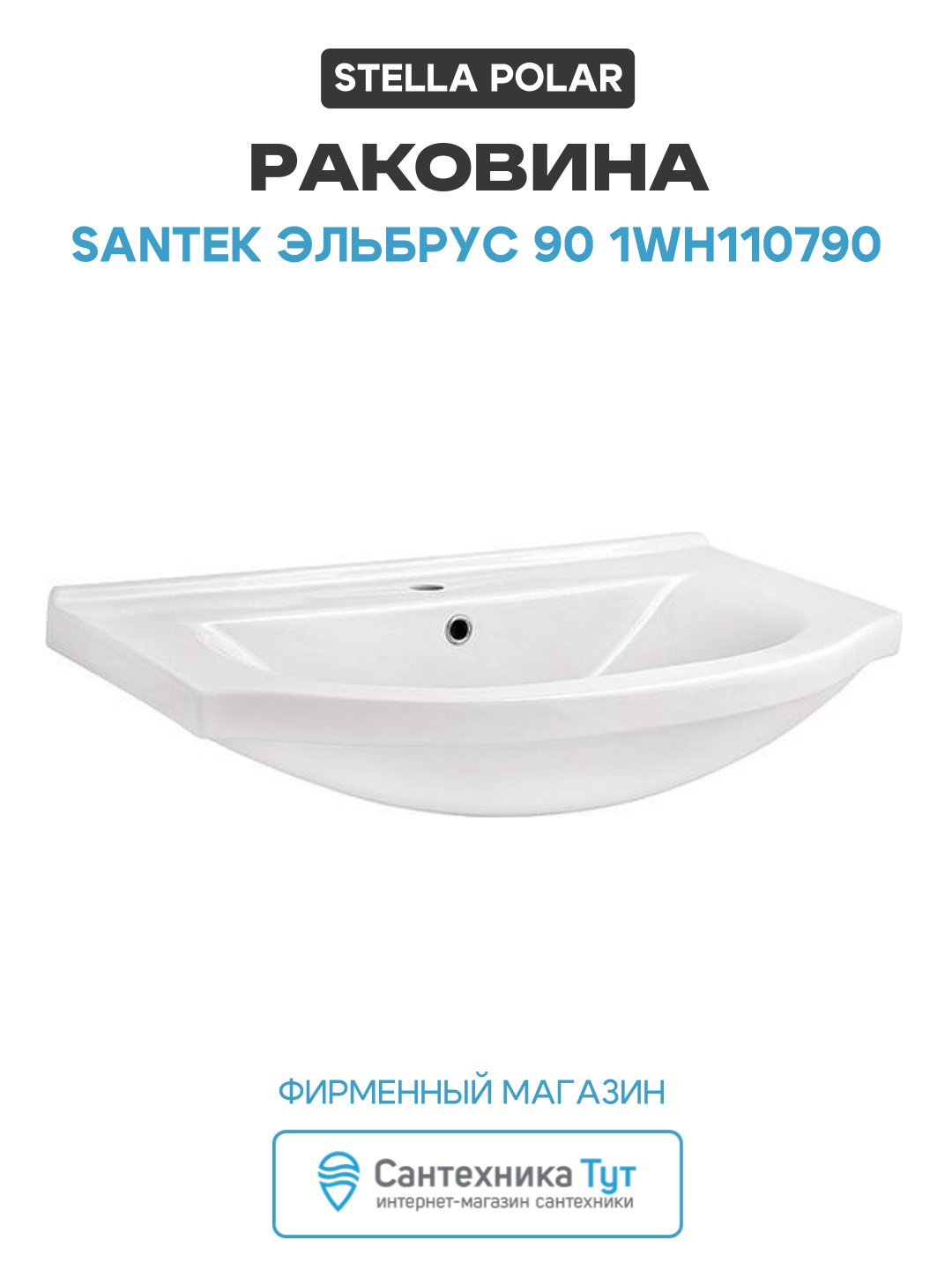 Раковина Stella Polar Santek Эльбрус 90 1WH110790 Белая, стильный дизайн: сравнение цен, характеристики, фото, актуальное наличие и цены.