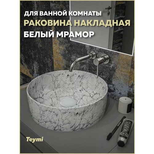 Наименование товара: Раковина Teymi Lina D41 накладная, Белый Мрамор T50198. Артикул производителя: T50198.