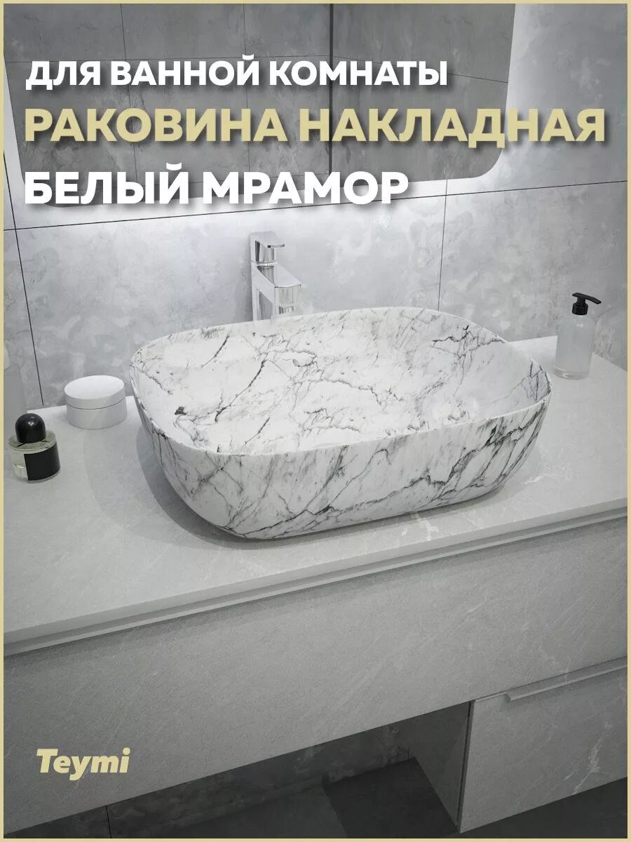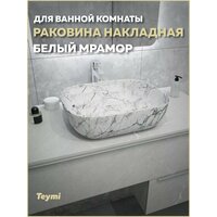 Купить Раковина для ванной накладная Teymi Solli 50 artceramic цвет белый мрамор T50393 с доставкой по всей России.