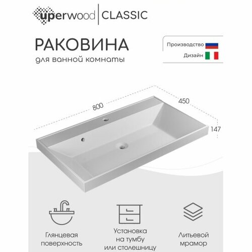 Раковина Uperwood для ванной Classic 80х45х14,5 см, белая глянцевая: сравнение цен, характеристики, фото, актуальное наличие и цены.