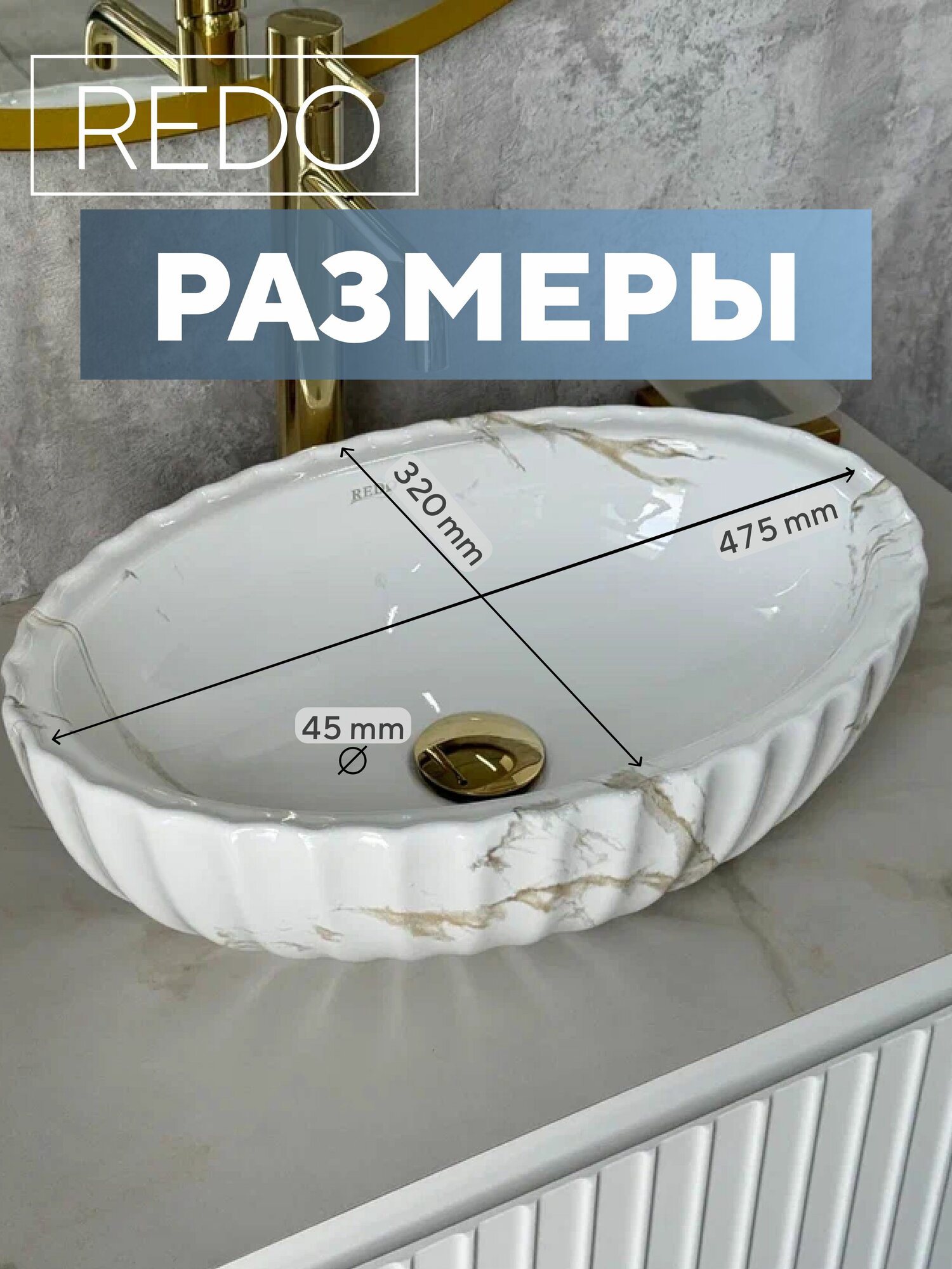 Представляем вашему вниманию прекрасную накладную раковину, которая станет стильным и практичным дополнением вашей ванной комнаты. Материал изделия высококачественный класс керамики - фарфор. Фарфор — это прочный материал, который обеспечивает долговечность мойки и защиту от повреждений. Устойчив к царапинам, сколам, и другим повреждениям, что делает его идеальным выбором для использования в ванных комнатах. Эта керамическая мойка в глянцевом мраморном цвете идеально впишется в любой интерьер, добавляя ему элегантности. Узкая форма позволяет сэкономить пространство, что делает ее отличным выбором для малых санузлов или комнат с ограниченной площадью. Чаша имеет глубокую конструкцию, обеспечивая удобство использования при умывании. Она отлично подходит под смеситель и легко устанавливается на столешницу или тумбу. Отсутствие отверстий дает возможность вам выбрать наиболее подходящий вариант крепления смесителя, что делает установку максимально удобной. Эта маленькая керамическая мойка предназначена не только для умывания, но и может быть использована в качестве дополнительной мойки рядом со стиральной машиной. Создайте функциональное и эстетически приятное пространство в вашем санузле с этой замечательной раковиной!