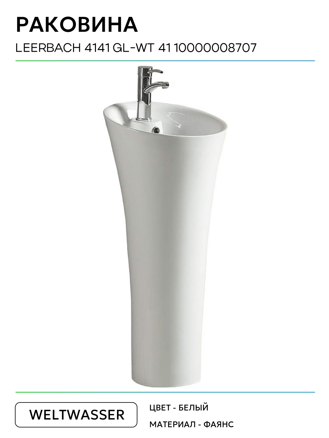 Раковина WeltWasser Leerbach 4141 GL-WT 41 10000008707 Белый глянец фаянс напольный 41 Германия: сравнение цен, характеристики, фото, актуальное наличие и цены.