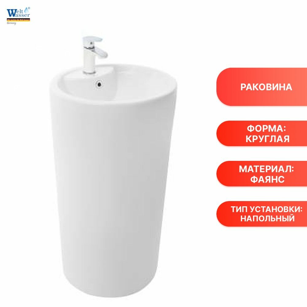 Бренд: WELTWASSER Ширина, см: 46 Глубина, см: 46 Высота, см: 83 Материал: фаянс Форма: круглая Монтаж: напольный Особенности: Для дачи, Для дома Вес с упаковкой, кг: 50 Дизайн: Модерн Страна производства: Германия Цвет: белый