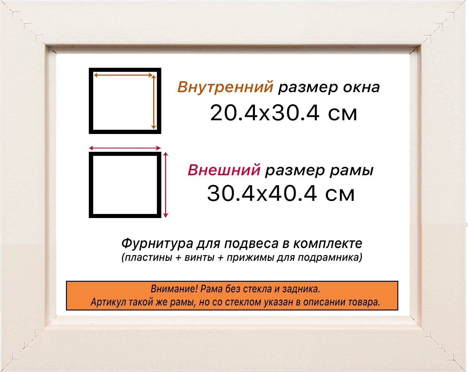 Пластиковая рама без стекла и задника изготовлена из безопасного и экологически чистого первичного полистирола высшей категории. Производитель: “ВсеПодрамники”. Для удобства установки к стандартному размеру добавлено 4 мм (по 2 мм с каждой стороны), чтобы ваше изделие легко поместилось в раму.