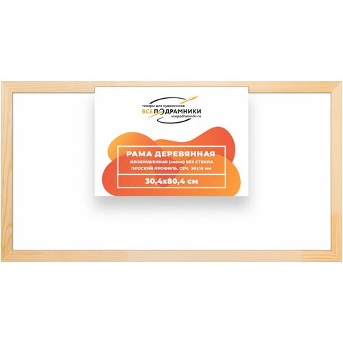 Рама деревянная неокрашенная без стекла и задника, плоский профиль, сечение рамы 30х15 мм, изготовлена из древесины сосны 1 сорта.