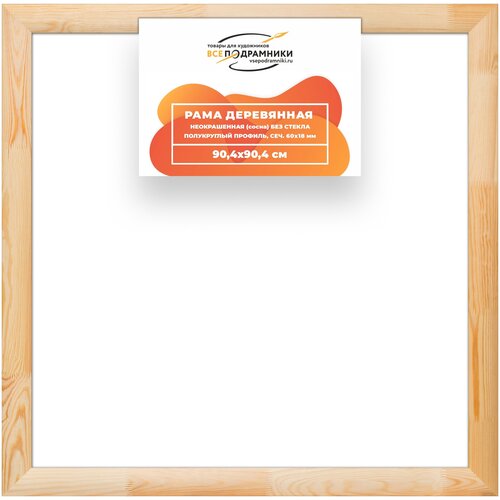 Рама деревянная неокрашенная без стекла и задника, полукруглый профиль, сечение рамы 60х18 мм, изготовлена из древесины сосны 1 сорта.