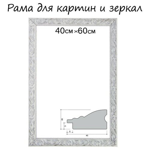 Рама для картин (зеркал) 40 х 60 х 4 см, дерево, «Версаль», цвет бело-серебристый.