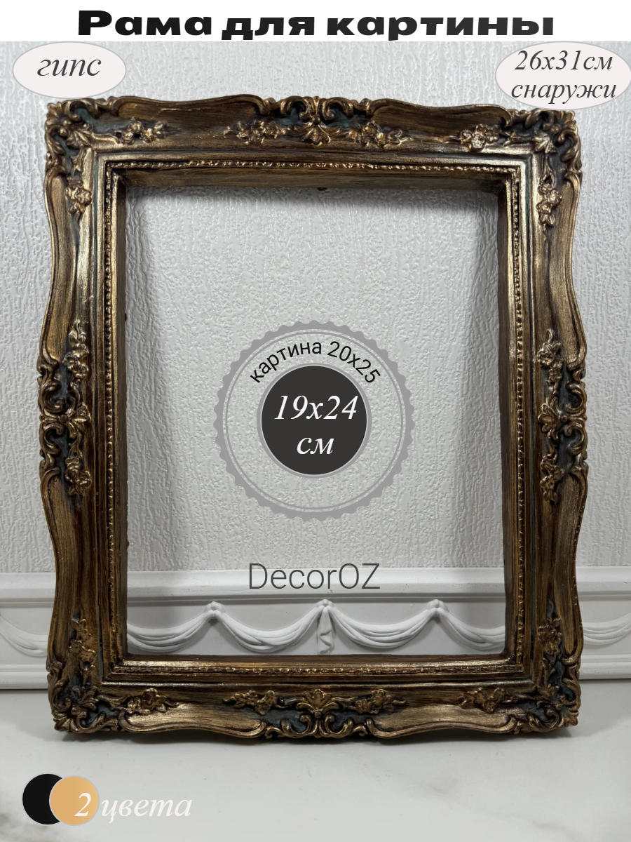 Рама багетная для картины 20х25 см в стиле барокко - это уникальное изделие, созданное вручную. Она выполнена из гипса, что гарантирует ее экологичность и долговечность. Цвет бронзы с патиной придает раме изысканный и благородный вид. Полностью ручная работа. Авторская окраска, цвет бронза с патиной. Внешний размер 26х31 см, размер картины 20х25 см. Идеально подойдет для размещения картины, фото в ретро стиле или зеркала для декора интерьера. В комплекте идет подвес для вертикального или горизонтального размещения на стене.
