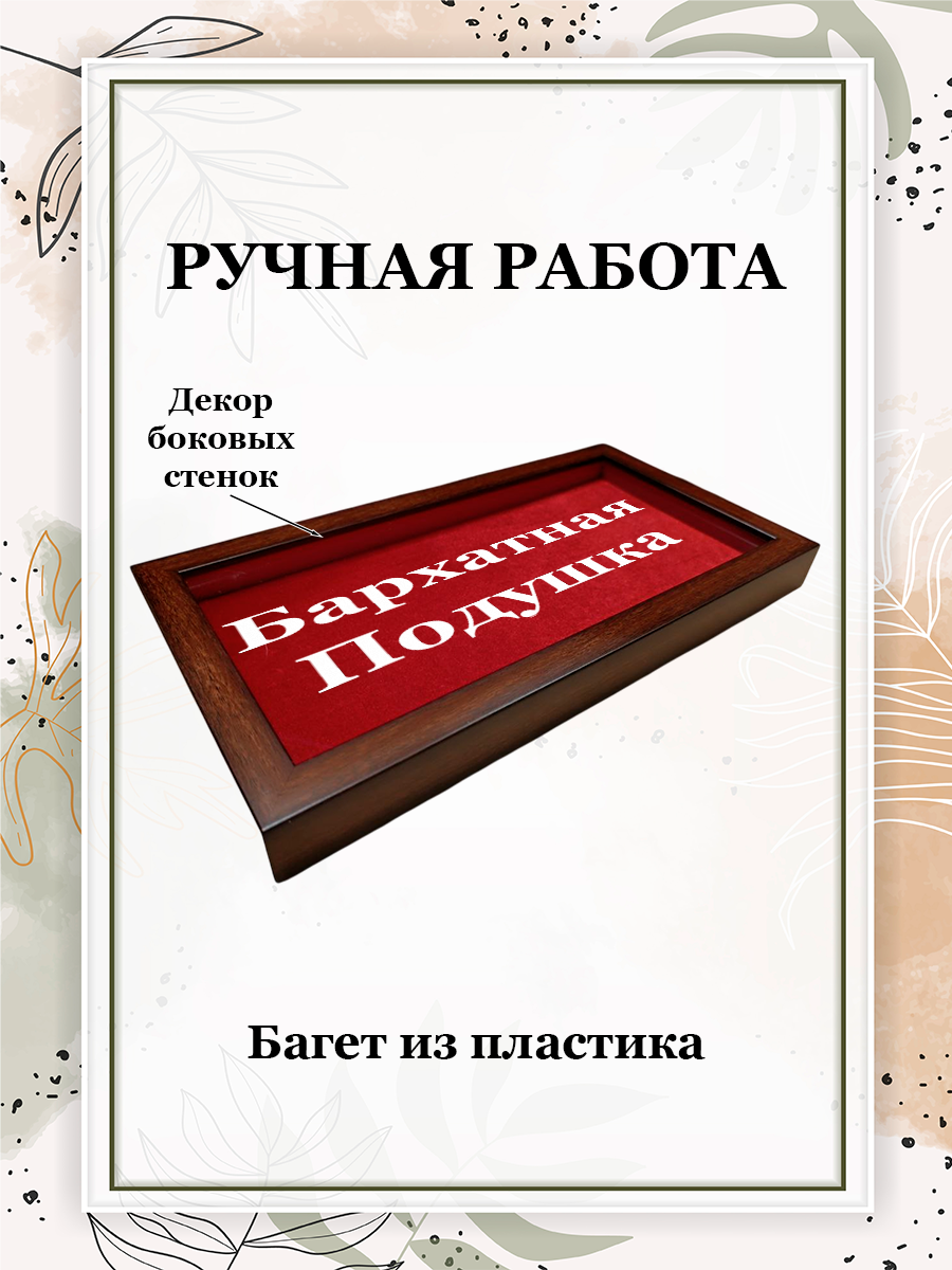 Представляем вам стильную раму для планшета, идеально подходящую для хранения медалей, орденов и нагрудных знаков. Этот оригинальный аксессуар станет незаменимым элементом вашего интерьера, позволяя с гордостью демонстрировать достижения и награды. Рама пластик, подушка бархат, стекло. Внешний размер 18.5х35 см, видимая часть бархатной подушки 14.5х31 см. Толщина рамы 3,2 см. Расстояние от бархатной подушки до стекла 1,5 см. Подходит для размещения 5 медалей. Для орденов, медалей, нагрудных знаков с креплением булавочного типа. Ручная работа.