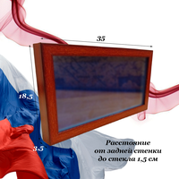 Внешний размер рамы составляет 18,5х35 см, видимая часть бархатной подушки - 14,5х31 см. Толщина рамы - 3,2 см, а расстояние от бархатной подушки до стекла - 1,5 см.