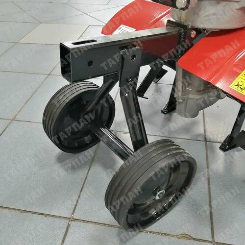 Присоединяется к мотокультиватору для его транспортировки к месту работы, после чего рама отсоединяется и оборудование готово к эксплуатации. Вес: 3,2 кг Габариты (ДхШхВ): 34х35х19 см Диаметр колеса: 190 мм