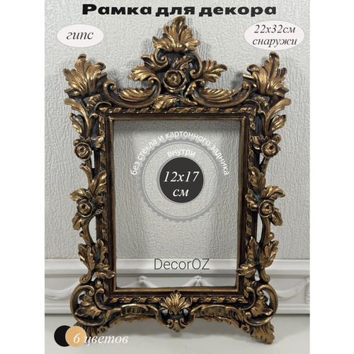 Рамка для декора из высокопрочного гипса, окрашена стойкими красками. Размер внешний 22х32, внутренний 12х17 см. Подойдет для оформления вышивки, панно, зеркал, постеров, фото. Без стекла и картонного задника. Проволочные крепления на обратной стороне (ушки) позволяют повесить на стене вертикально, горизонтально и закрепить фото.