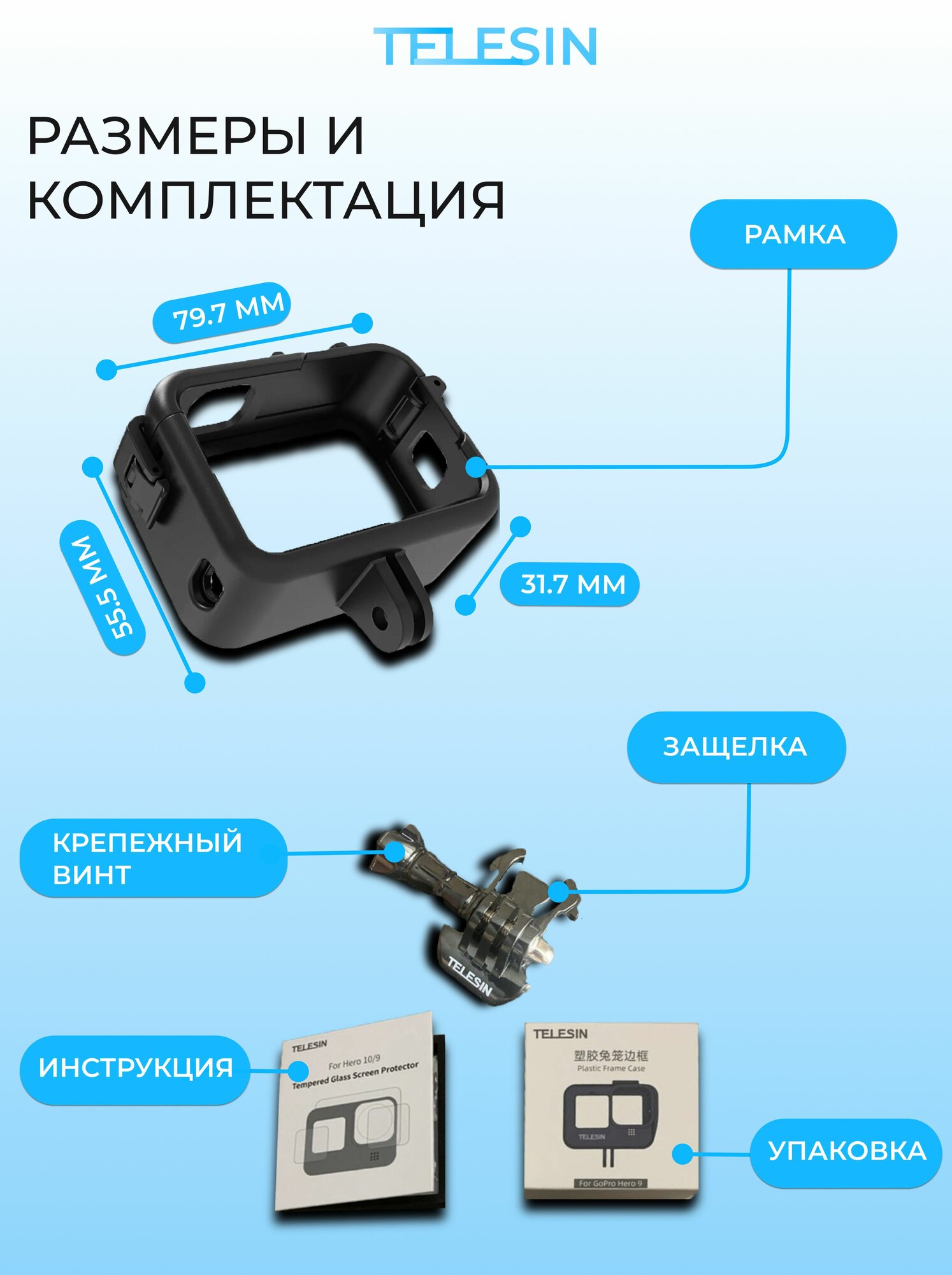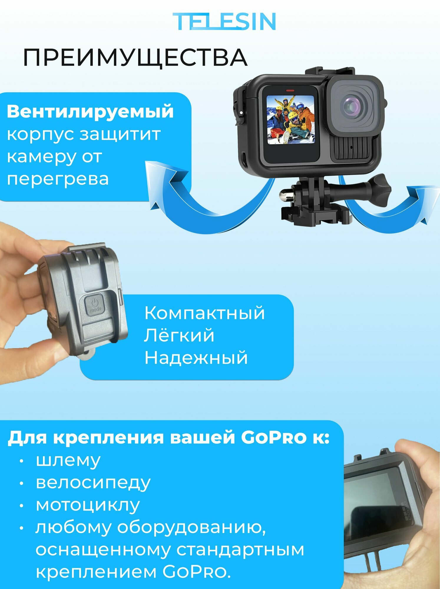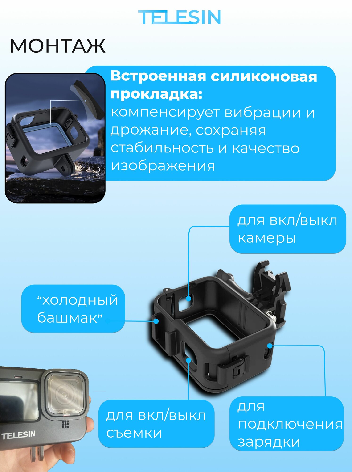 Купить Рамка для экшн камеры GoPro 13/12/11/10/9 крепление холодный башмак Telesin с доставкой по всей России. Рамка для экшн камеры GoPro 13/12/11/10/9 крепление холодный башмак Telesin: сравнение цен, характеристики, фото, актуальное наличие и цены.