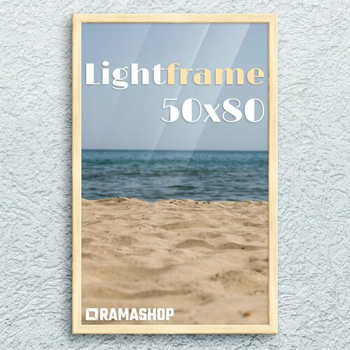 Рама багетная Light Frame, 80 х 50 см Внутренний размер Рамы: 80.3 см х 50.3 см Внешний размер рамы: 83.7 см х 53.7 см Материал рамы: Карельская сосна Профиль: 24 х 16 мм, скругленный Материал задника: гофрокартон т-24, 3.2 мм Стекло: ПЭТ вкладыш 0.3 мм с защитной пленкой
