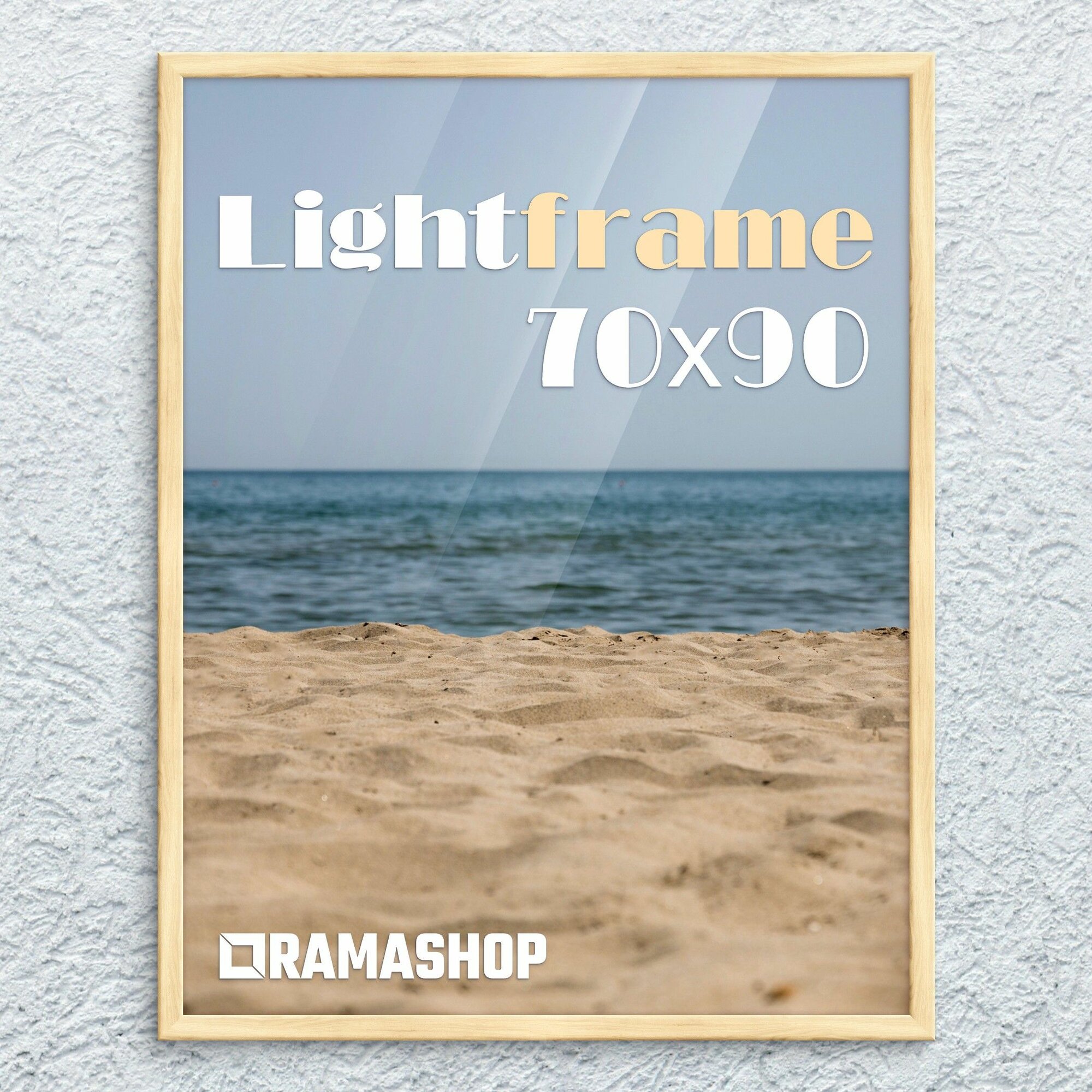 Рама багетная Light Frame, 70 х 90 см Внутренний размер Рамы: 70.3 см х 90.3 см Внешний размер рамы: 73.7 см х 93.7 см Материал рамы: Карельская сосна Профиль: 24 х 16 мм, скругленный Материал задника: гофрокартон т-24, 3.2 мм Стекло: ПЭТ вкладыш 0.3 мм с защитной пленкой