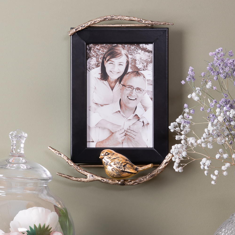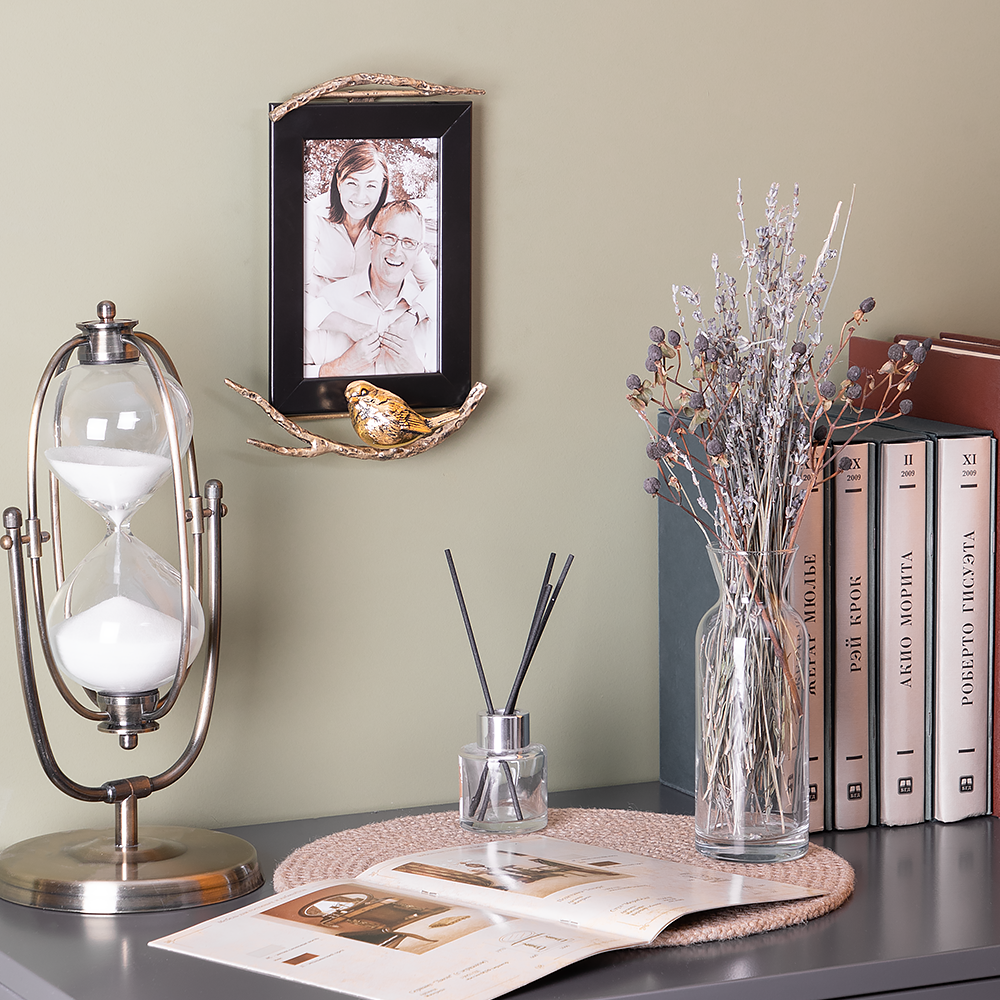 Купить Настенная деревянная рамка Bogacho Зарничка с декором птичкой из мрамора для фотографий формата А6 10х15 см с доставкой по всей России.