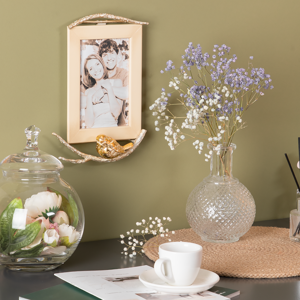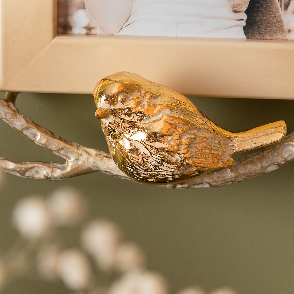 Настенная деревянная рамка Bogacho Зарничка с декором птичкой из мрамора для фотографий формата А6 10х15 см