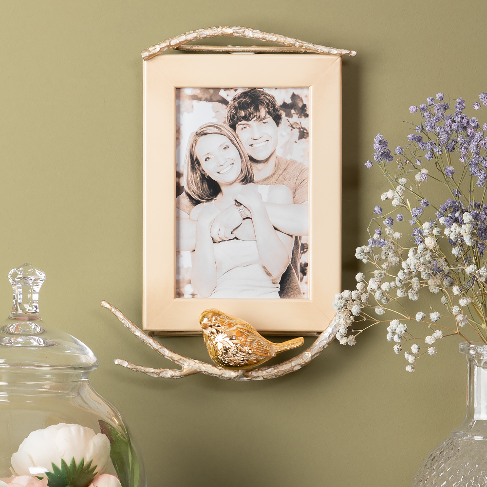 Купить Настенная деревянная рамка Bogacho Зарничка с декором птичкой из мрамора для фотографий формата А6 10х15 см с доставкой по всей России.