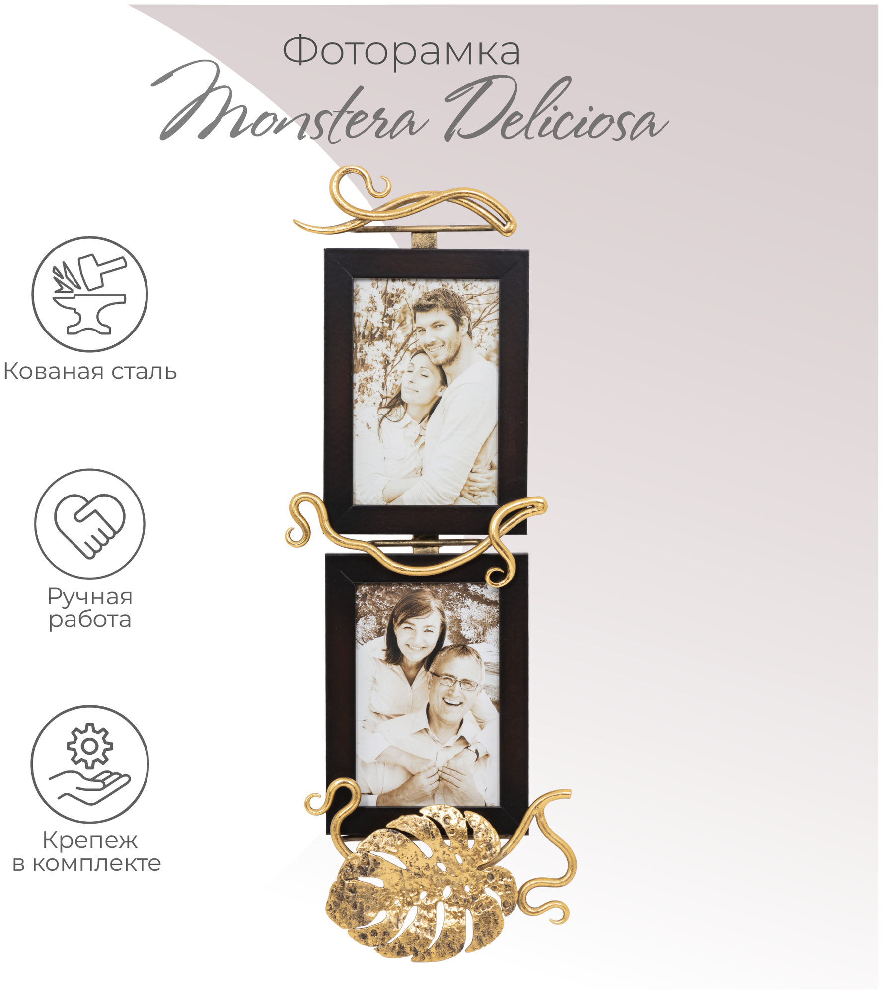 Настенная деревянная рамка Bogacho Monstera Deliciosa с декором из стали для фотографий формата А6 10х15 см: сравнение цен, характеристики, фото, актуальное наличие и цены.