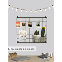 Рамка для фото, Органайзер для хранения, MAGS GoodMood 70х60 см шаг ячейки 10х10 см черный матовый с 4 креплениями, фоторамка коллаж