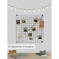 Рамка для фото, Органайзер для хранения, настенный, 70х70 см GoodMood 4 крепления, Диагональ, цв. черный