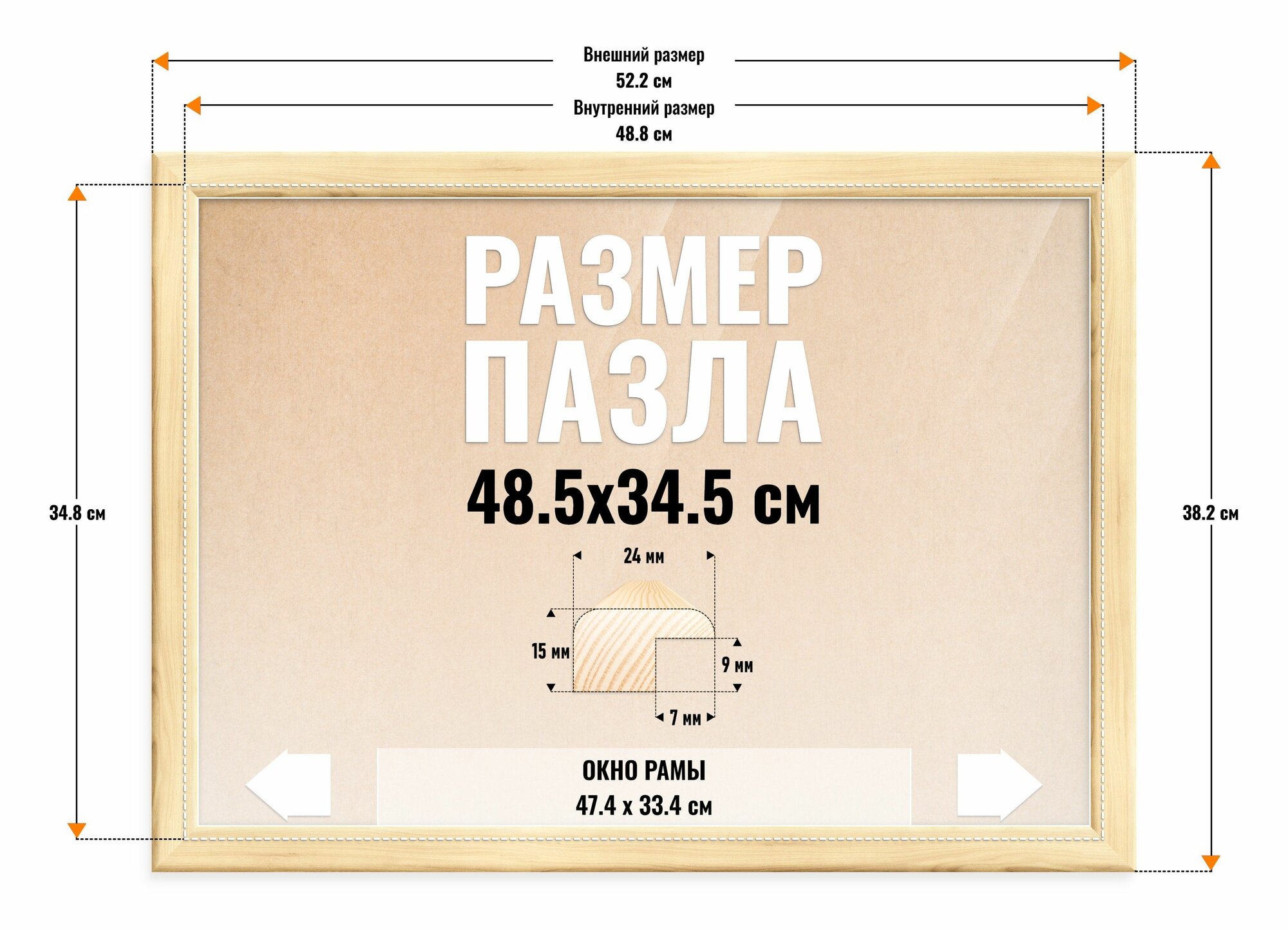 Рамка для пазла 48.5х34.5 см, фоторамка деревянная. Неокрашенная, cкругленный профиль 24х16 мм. Карельская сращенная сосна: сравнение цен, характеристики, фото, актуальное наличие и цены.