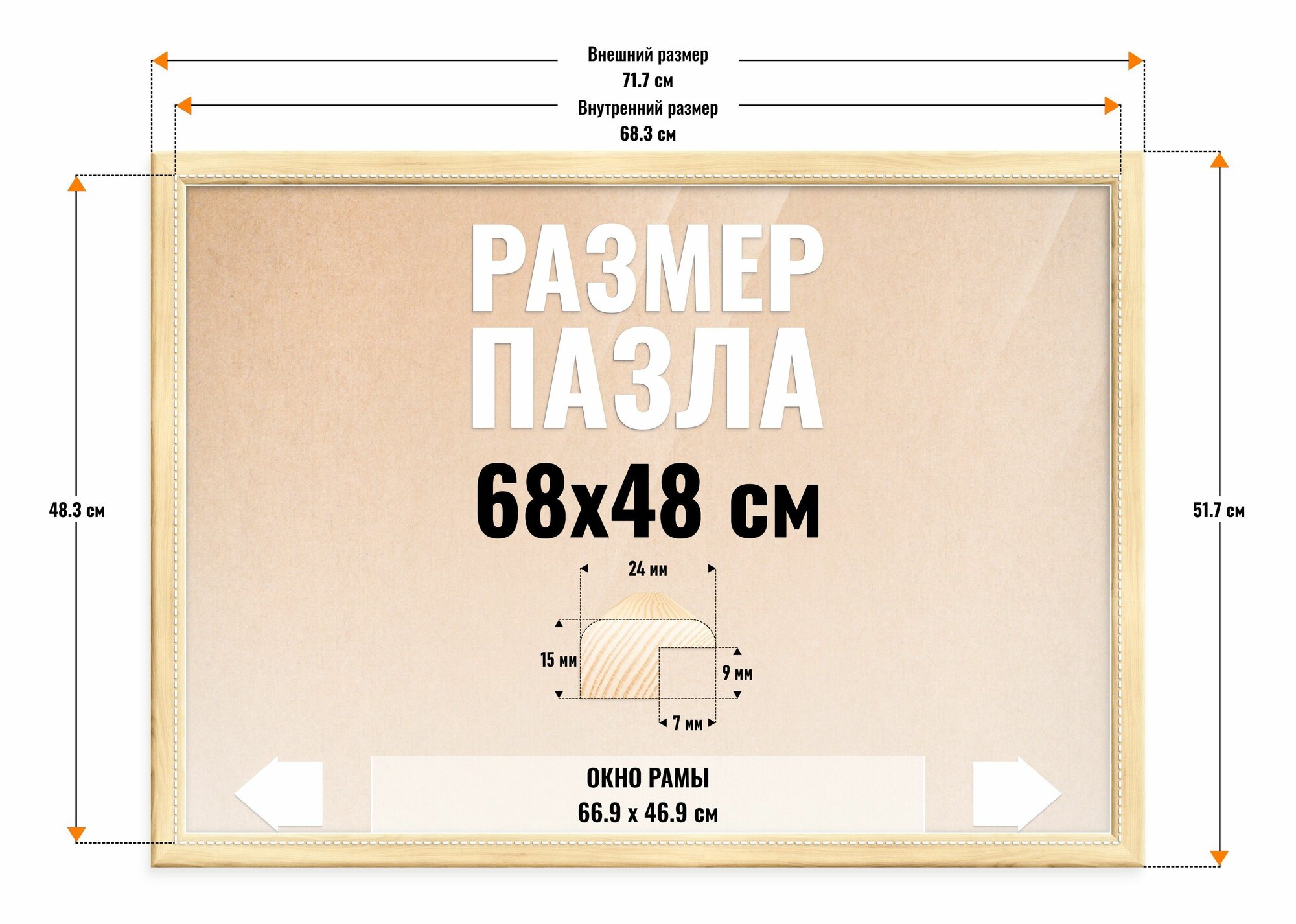 Рамка для пазла 68х48 см, фоторамка деревянная. Неокрашенная, cкругленный профиль 24х16 мм. Карельская сращенная сосна: сравнение цен, характеристики, фото, актуальное наличие и цены.