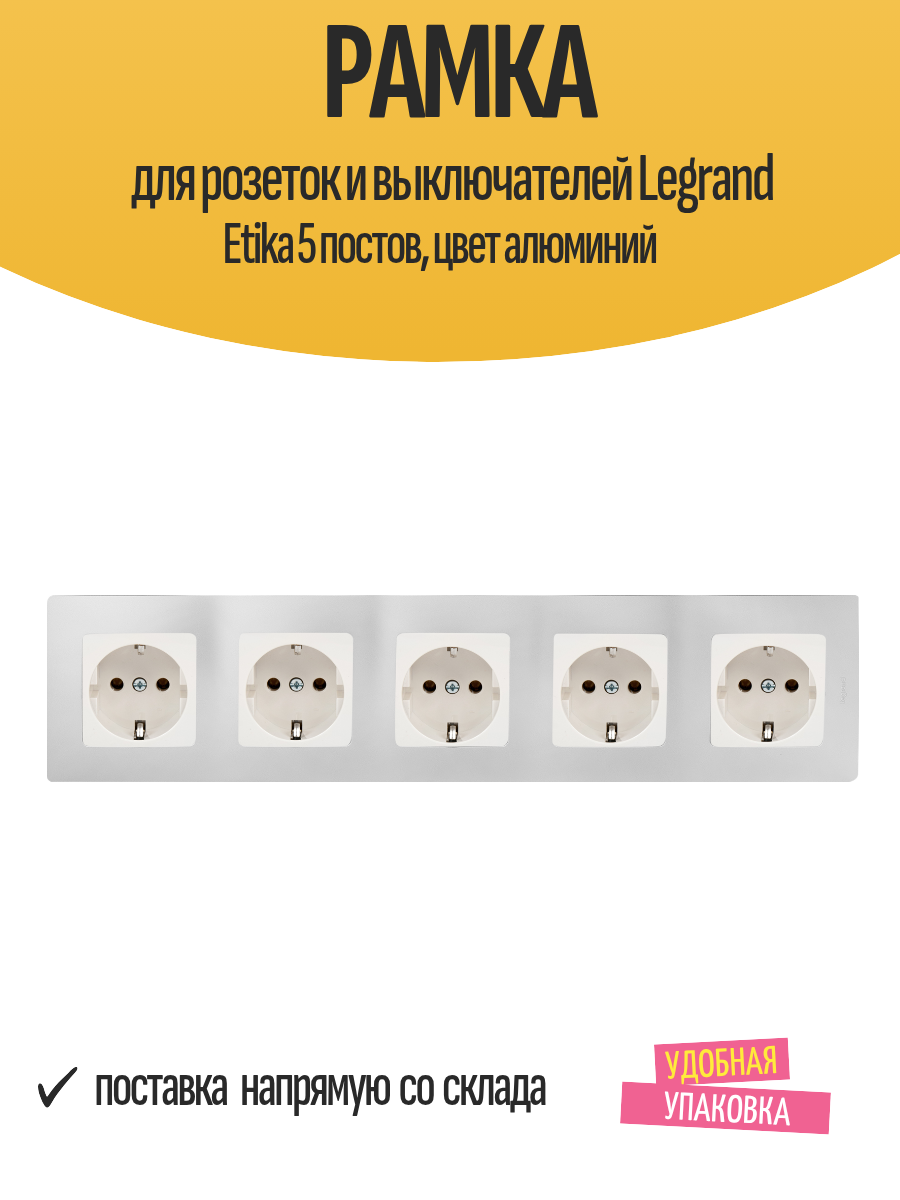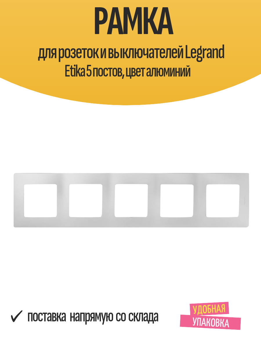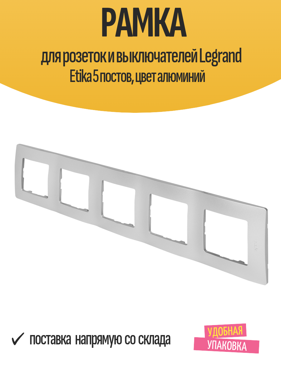 Рамка для розеток и выключателей Legrand Etika 5 постов, цвет алюминий: сравнение цен, характеристики, фото, актуальное наличие и цены.