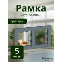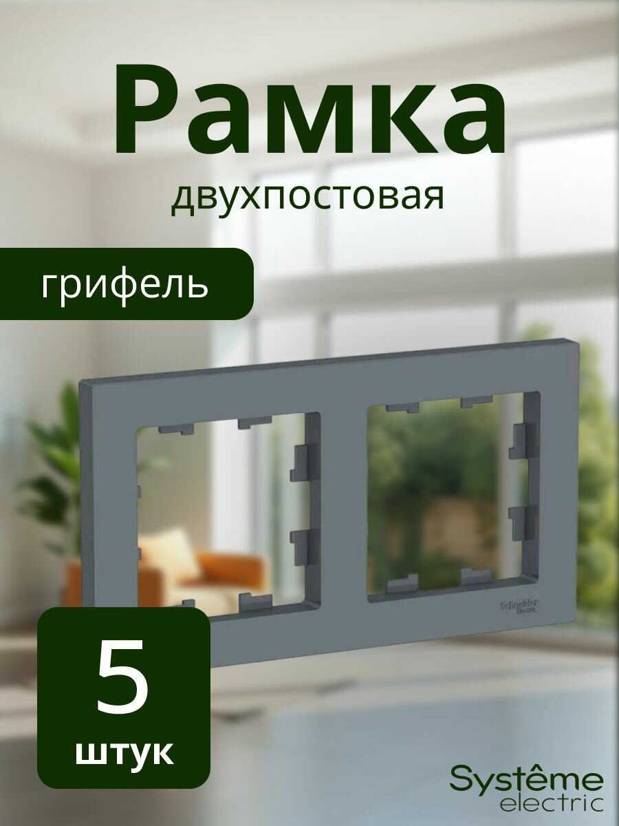 Купить Systeme Electric Рамка для розетки и выключателя серии AtlasDesign ATN000702 двойная, квадратная с антибактериальным покрытием грифель, 5 штук с доставкой по всей России.