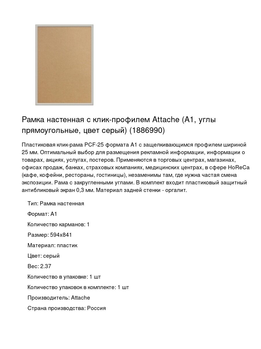 Рамка настенная с клик-профилем Attache (А1, углы прямоугольные, цвет серый) (1886990): сравнение цен, характеристики, фото, актуальное наличие и цены.