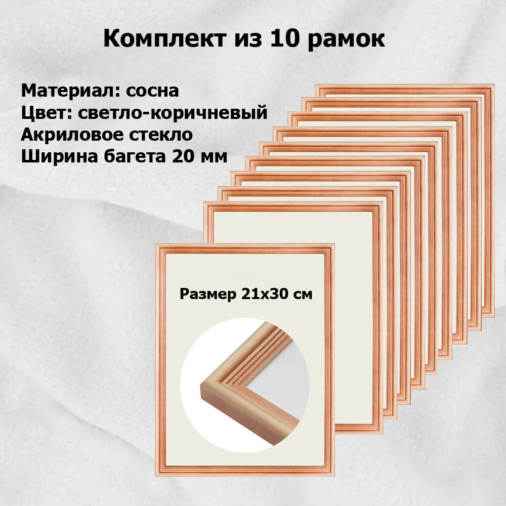 Рамка Сосна тонированная 21х30 см (А4) ширина багета 20 мм вставка — пластик (Комплект 10 штук): сравнение цен, характеристики, фото, актуальное наличие и цены.