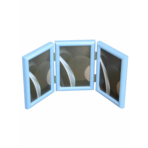 Рамка тройная вертикальная 10х15 см Голубой состоит из трёх рамок формата 10х15 см, соединённых собой металлическими петлями. Размер видимой части 9х14 см. Это надо учитывать при вставке фотографий. Ширина багета 14 мм. Задники рамки изготовлены из оргалита, в рамку поставлено акриловое, небьющееся стекло. Фотографии в рамке расположены вертикально. Кроме рамок формата 10х15 см предлагаем рамки формата 15х21 см, в разных расцветках.