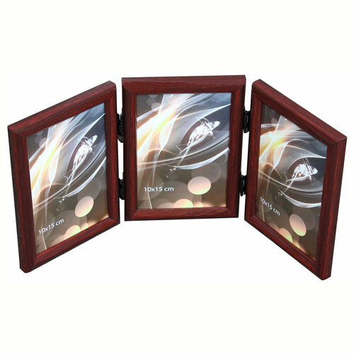 Рамка тройная вертикальная 10х15 см Коричневый багет 385 состоит из трёх рамок формата 10х15 см, соединённых собой металлическими петлями. Размер видимой части 9,2х14,2 см. Это надо учитывать при вставке фотографий. Ширина багета 14 мм, он имеет полукруглую форму. Задники рамки изготовлены из оргалита, в рамку поставлено акриловое, небьющееся стекло. Фотографии в рамке расположены вертикально. Кроме формата 10х15 см предлагаем рамки формата 15х21 см, в разных расцветках: белый, золото, серебро, белый, малахит.