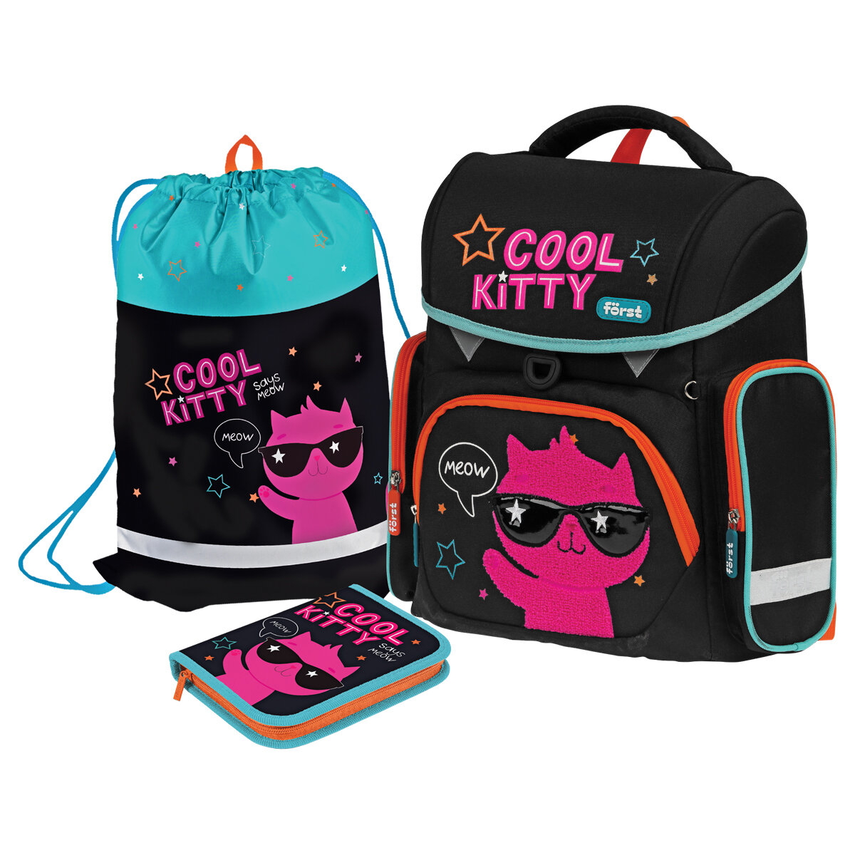Ранец F? rst F-Set "Cool kitty" 35*29*16см, 1 отделение, 3 кармана, анатомическая спинка, пенал, мешок для обуви