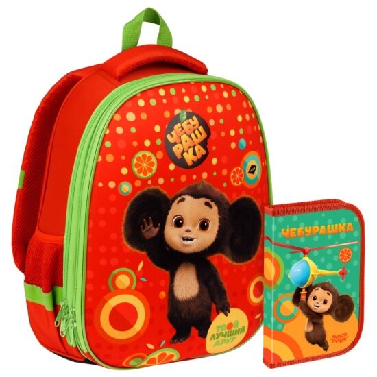 Купить Ранец Мульти-пульти «Чебурашка» 39*30*18см, 2 отделения, 2 кармана, анатомическая спинка, пенал в комплекте с доставкой по всей России.