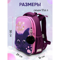Ранец / рюкзак для девочки школьный ортопедический 1-4 класс Сиреневая кошка