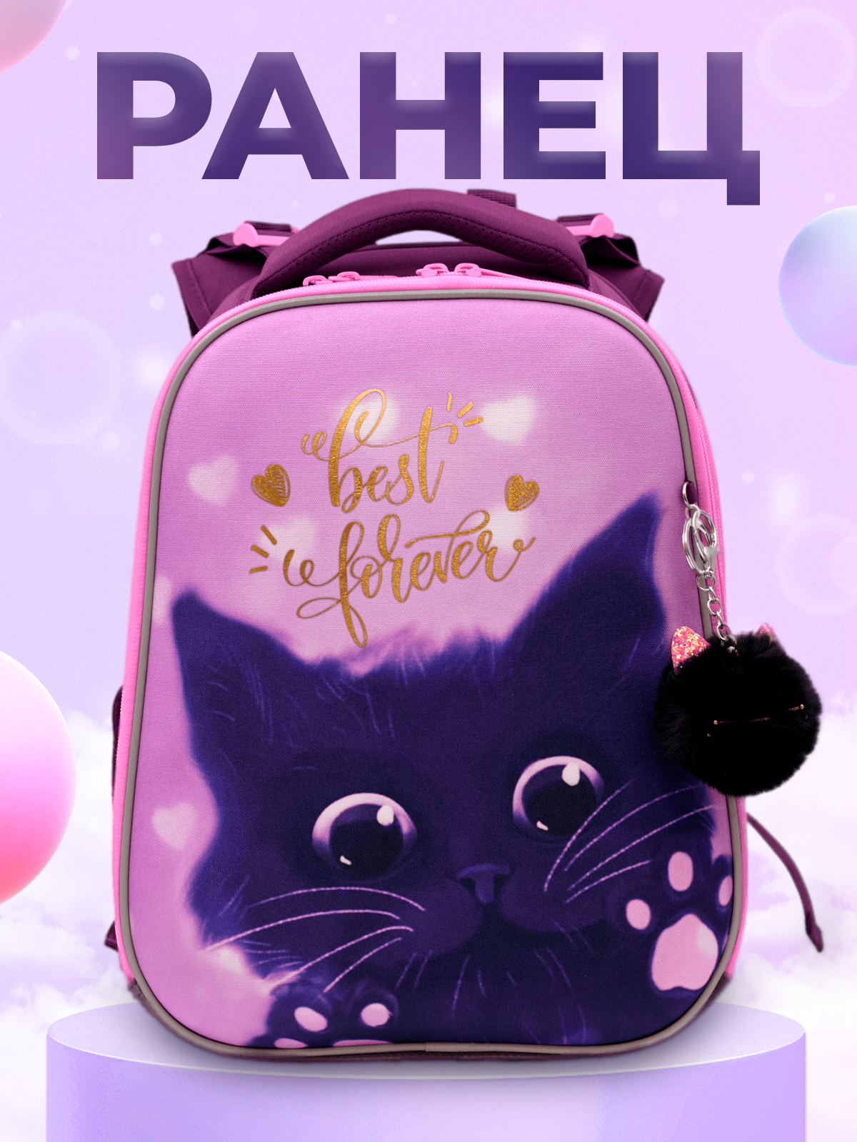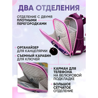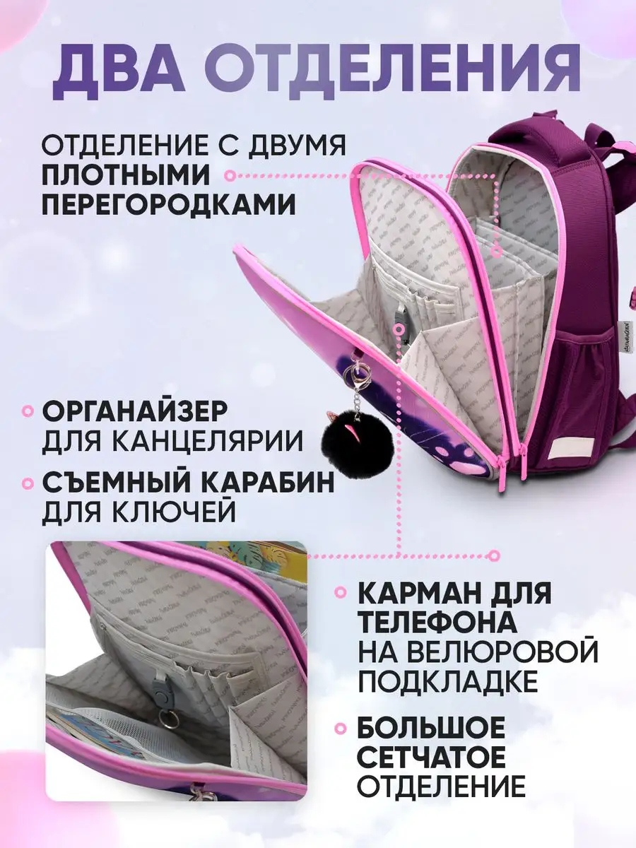 Купить Ранец / рюкзак для девочки школьный ортопедический 1-4 класс Сиреневая кошка с доставкой по всей России.