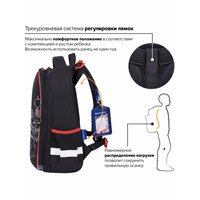Удобная мягкая вентилируемая спинка с воздушными спонжевыми панелями разработана с учетом анатомических особенностей детей младшего школьного возраста. При правильной регулировке ранец будет практически не ощущаться на плечах и не будет доставлять дискомфорт при носке. В процессе эксплуатации равномерное распределение нагрузки позволит сохранить правильную осанку!