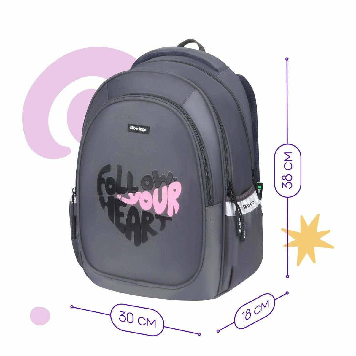 Ранец школьный Berlingo Modern «Follow your heart» 38х30х18 см, 3 отделения, 2 кармана, эргономичная спинка (RU-MD-1033): сравнение цен, характеристики, фото, актуальное наличие и цены.