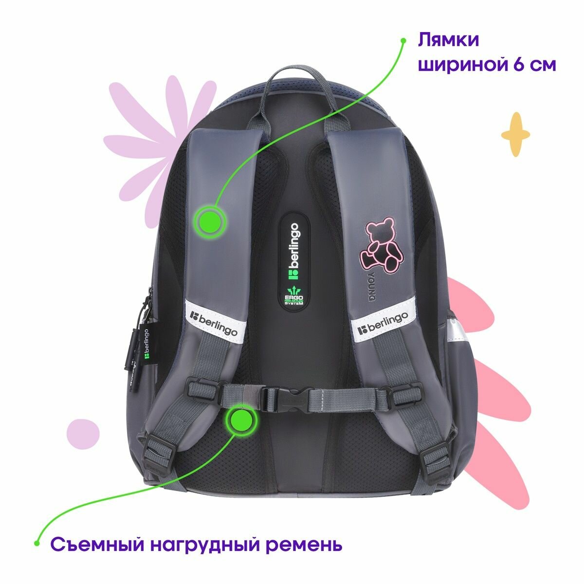 Купить Ранец школьный Berlingo Modern «Follow your heart» 38х30х18 см, 3 отделения, 2 кармана, эргономичная спинка (RU-MD-1033) с доставкой по всей России.