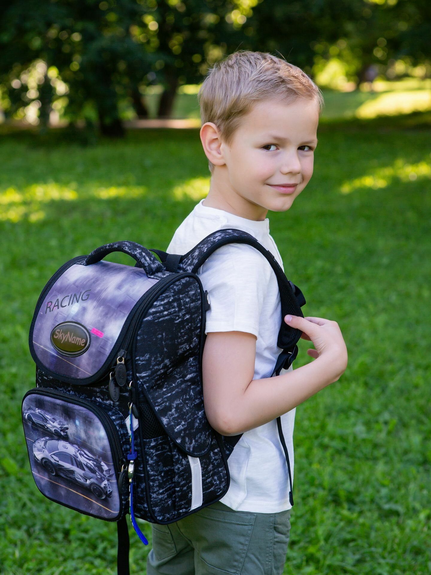 Купить Ранец школьный для мальчика 15 л с анатомической спинкой SkyName (СкайНейм) с брелоком-часы с доставкой по всей России.