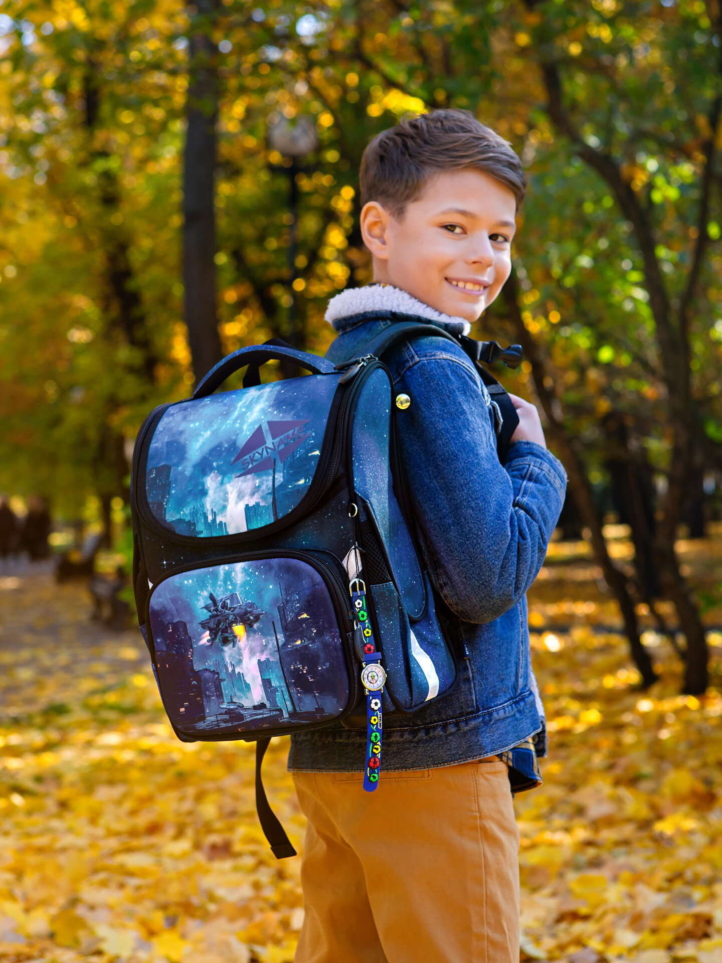 Купить Ранец школьный для мальчика 15 л с анатомической спинкой SkyName (СкайНейм) с брелоком-часы с доставкой по всей России.