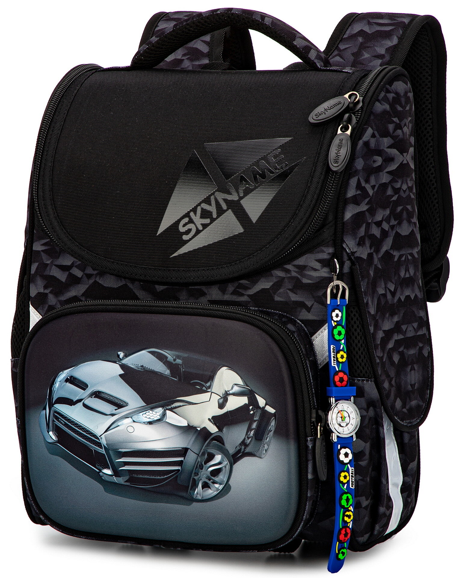Купить Ранец школьный для мальчика 15 л с анатомической спинкой SkyName (СкайНейм) с брелоком-часы с доставкой по всей России.
